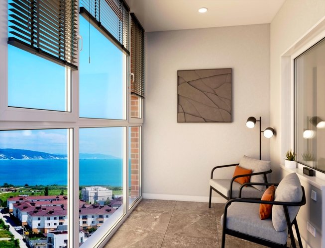 Вид на море открывается даже с невысоких этажей и является прекрасным дополнением к удобным планировкам. Панорамное остекление позволит любоваться окружающими видами практически в широкоэкранном формате.